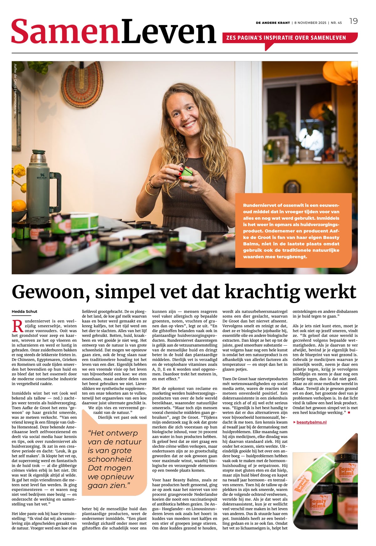 • Dierlijk vet als weldaad voor de huid
